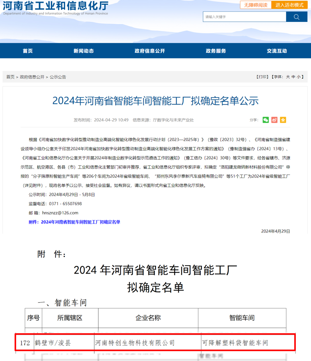 近日,河南特創(chuàng)生物科技有限公司的“可降解塑料袋智能車間”在河南省工業(yè)和信息化廳的嚴(yán)格審驗下,成功獲得2024年省級智能車間認(rèn)證,進(jìn)一步鞏固了河南特創(chuàng)在生物基可降解智能制造領(lǐng)域的領(lǐng)先地位。這不僅是對河南特創(chuàng)智能化車間的肯定,也表明河南特創(chuàng)在智能化轉(zhuǎn)型中取得了重要進(jìn)展。