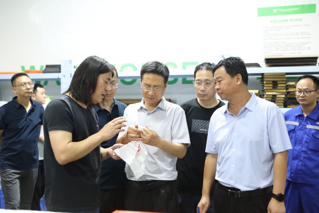隨后,郜善軍一行又來(lái)到了河南特創(chuàng)現(xiàn)代化生產(chǎn)車(chē)間,近距離參觀了可降解制品的生產(chǎn)流程,并對(duì)公司高效的生產(chǎn)流程與嚴(yán)格的管理體系表示贊賞。郜善軍表示,在全省禁塑政策推動(dòng)下,河南特創(chuàng)應(yīng)把握機(jī)遇,提升產(chǎn)能,優(yōu)化產(chǎn)品,為禁塑工作提供有力支持。